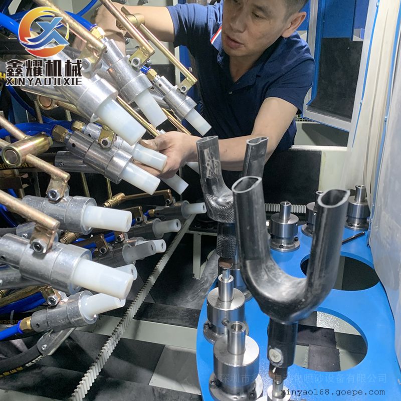 ·设有12个工位,大转盘间歇运作,小转盘自转,喷枪可水平,垂直,自由调节,喷砂时间可根据喷砂效果自行设定;